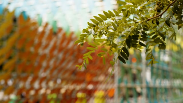 Suspendus à une simple structure d’échafaudage, ces pétales nous submergent, dessinant les contours d’un univers inversé où le ciel serait un bouquet éclatant de fleurs délicates.